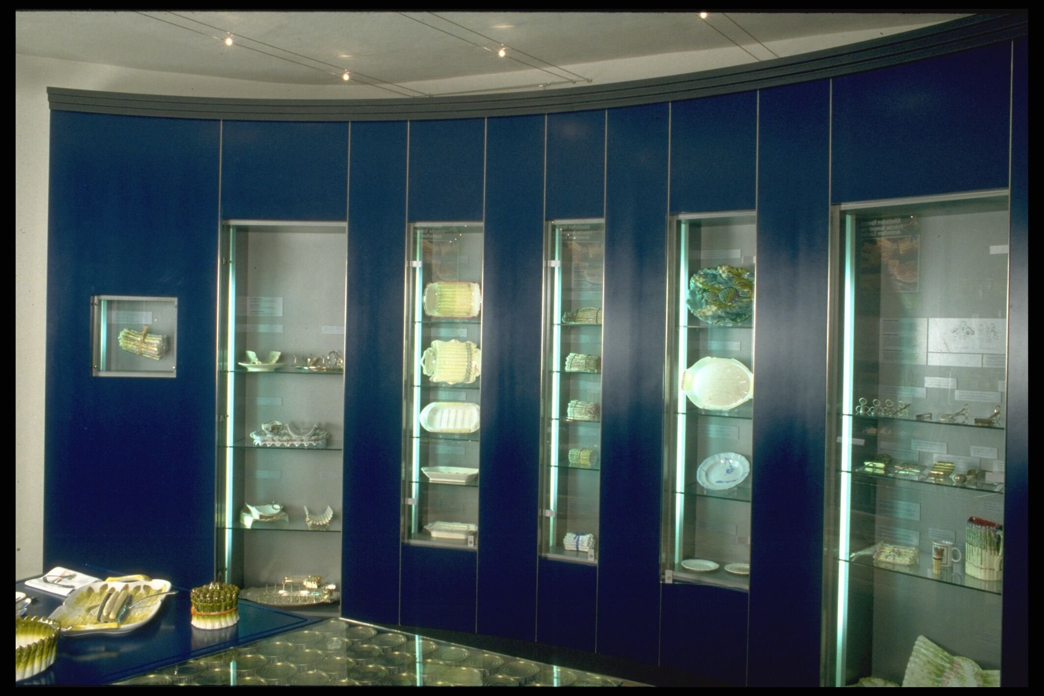 Das erste Obergeschoss steht unter dem Motto „Spargelessen". Neben Rezepten und Kochbüchern ist hier eine einzigartige Sammlung von Spargelgeschirren zu sehen: so zum Beispiel eine wertvolle Spargeldeckeldose aus Meißen aus dem Jahr 1780, von der es weltweit nur noch zwei Exemplare gibt, ferner ein Teller mit Spargelmotiven des bekannten Jugendstilkünstlers Emile Gallé oder die wunderschöne Spargelzange des russischen Hofjuweliers Carl Peter Fabergé von 1890.