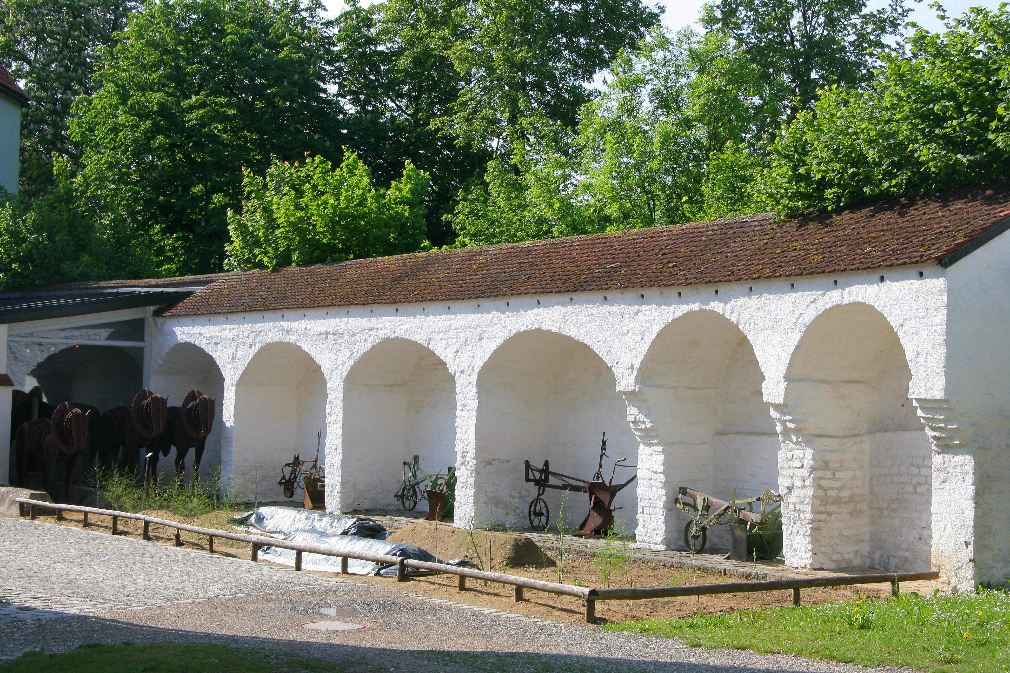 Exponate und Präsentation zu Spargelanbau und Spargelernte im Erdgeschoss und im Freigelände an der Stadtmauer